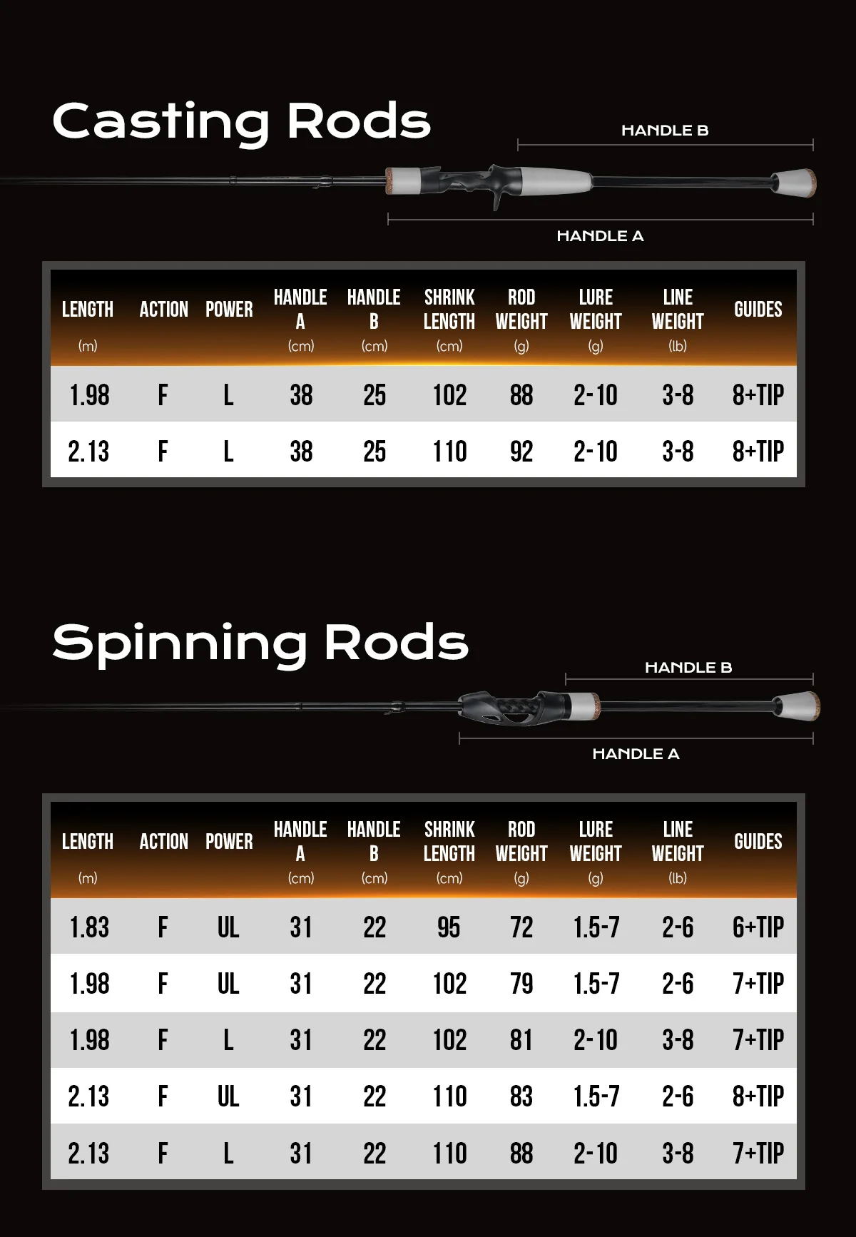 PS: Choose from the options your preferred Rod Type ( Casting or Spinning), Length and Action.