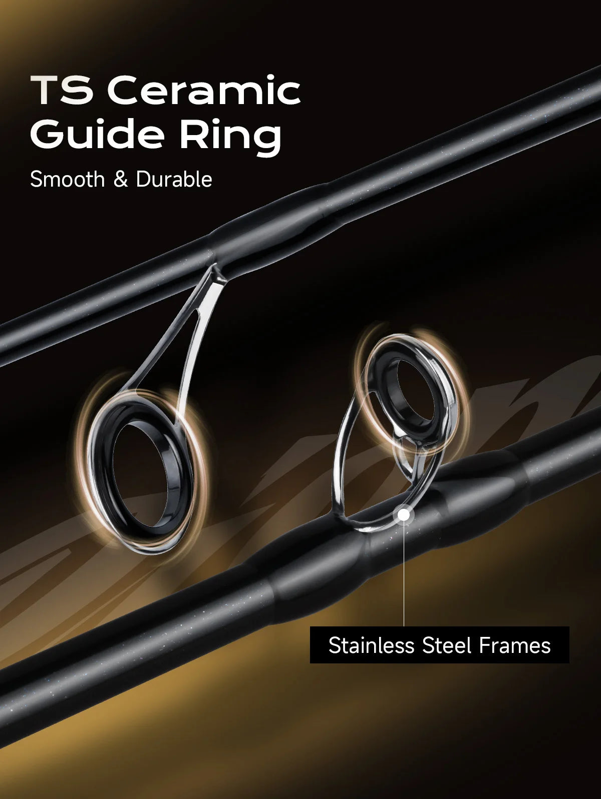 - Premium TS Ceramic Guide Rings: Features smooth and durable ceramic inserts housed in rugged stainless steel frames for reduced friction and extended casting distance.