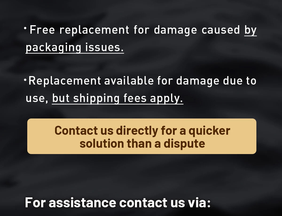 Please inspect your order upon reception and contact us immediately if the item is defective, damaged or if you receive the wrong item, so that we can evaluate the issue and make it right.