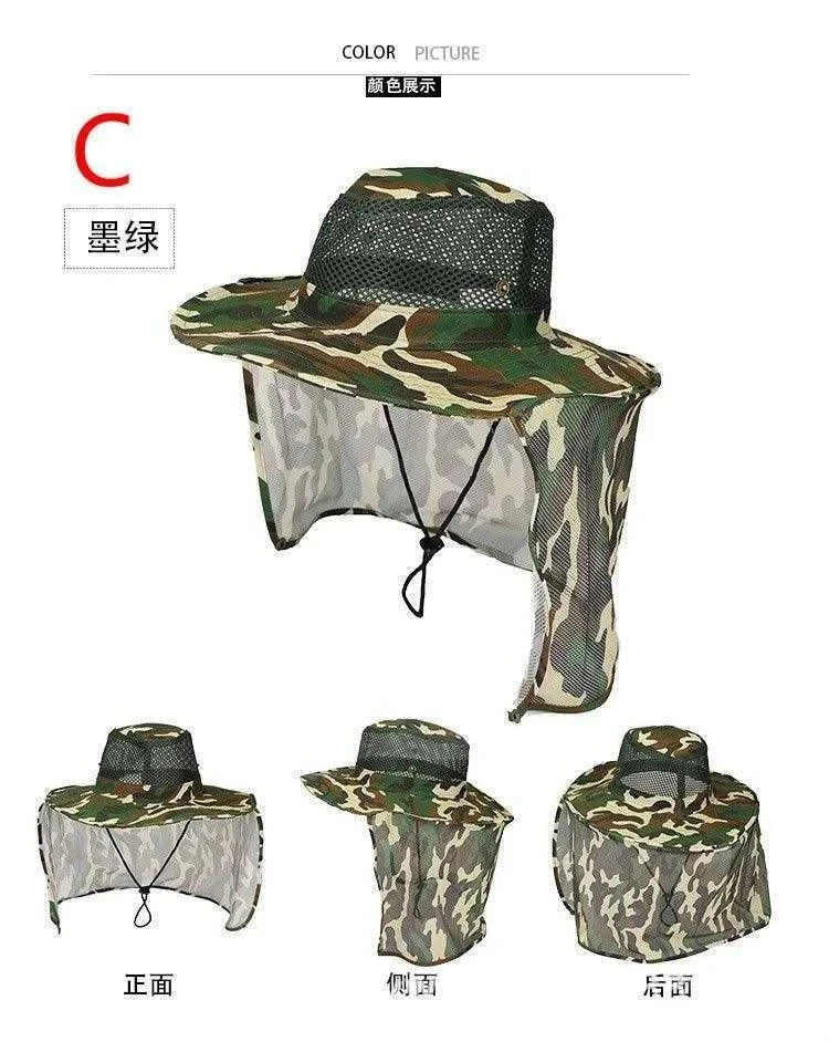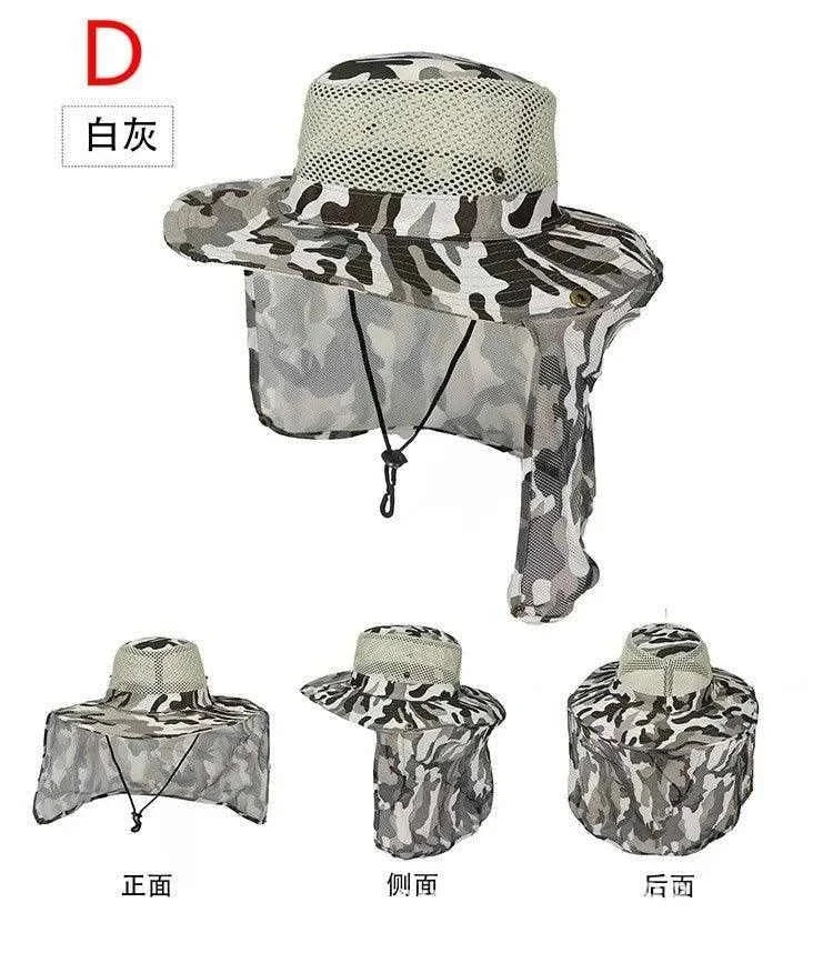 Sombrero de pesca de ala ancha, camuflaje, protección solar UV