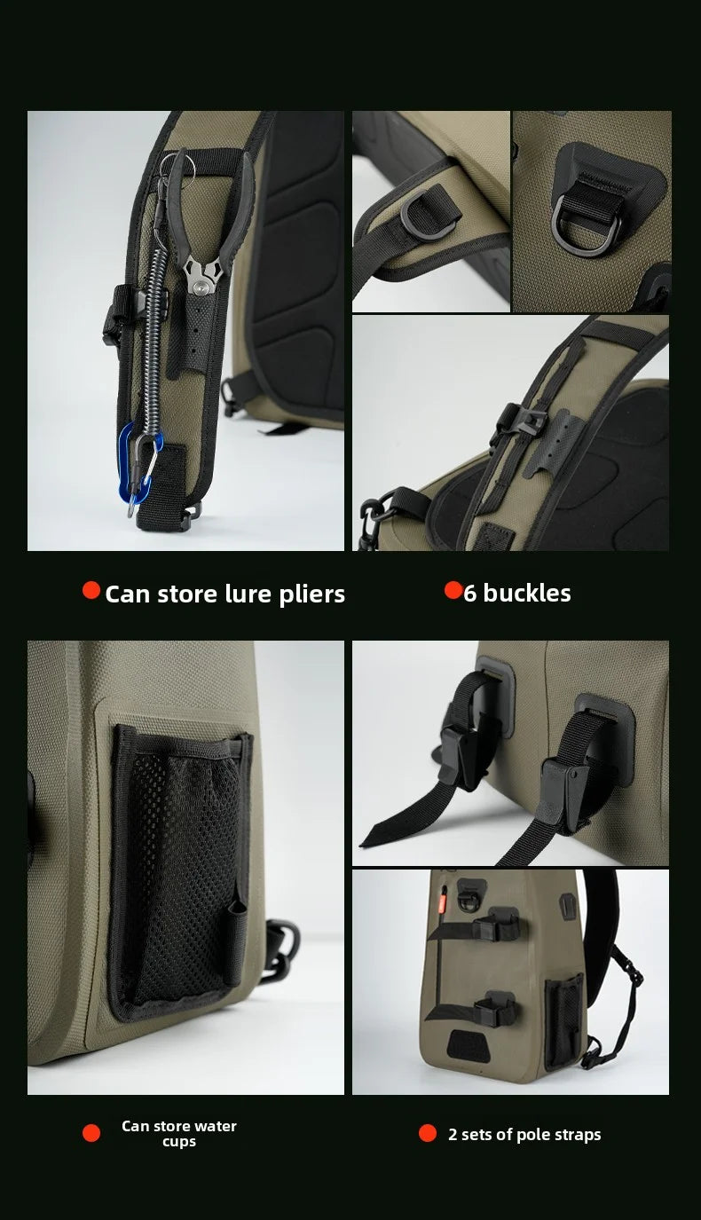- Waterproof Protection: The bag is built to be deeply waterproof, ensuring that your fishing lures, line, and sensitive accessories are protected from spray and rain.
