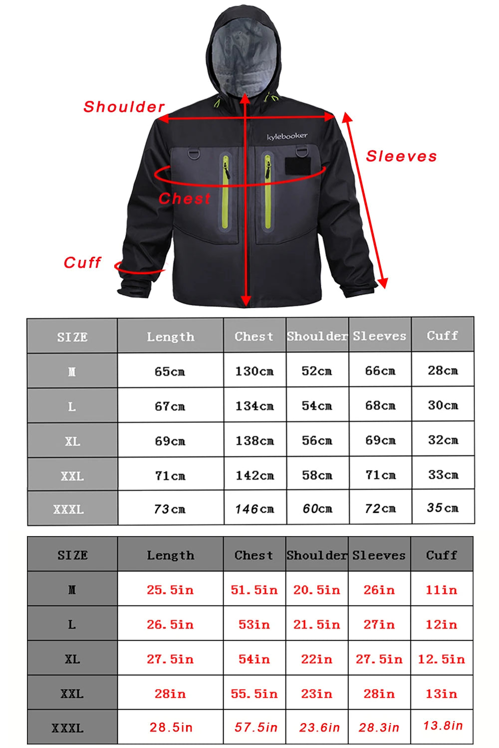 Kylebooker Breathable Wading Jacket 3-Layer Waterproof and Breathable Fabric